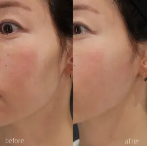 頬コケ改善:(左)施術前 (右)施術後